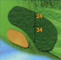 Despite sand on both sides of the fairway, the wide landing area slopes down to the right reachable for an average golfer. With a good drive, a player can attack the green in tow but the shots is make difficult by a lake on the front. Those who choose for lay up requires to play right of pond leaving a short approach to the green, which slopes significantly from left to right and is guarded by sand.
