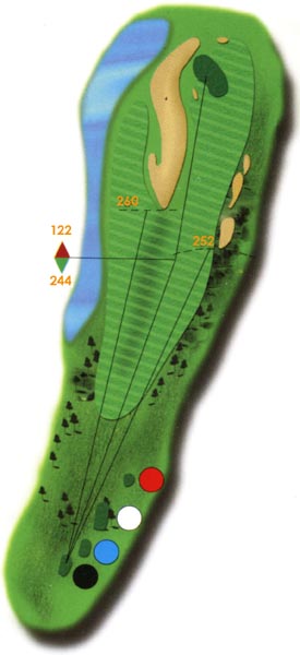 HOLE 13 Par 4 ( 366 Metres ) Index : 12 This moderately long par four climps gently uphill along reasonably wide fairway. A good drive to the right center fairway will allows you a good approach to the green. Players are to be careful of the long bunker along the left side set below the fairway level. |